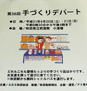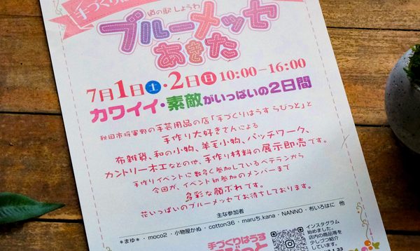 秋田県仙北市の思い出の潟分校にて開催される「たざわこクラフト市2019」に参加します。去年に続き2度目の参加となります。